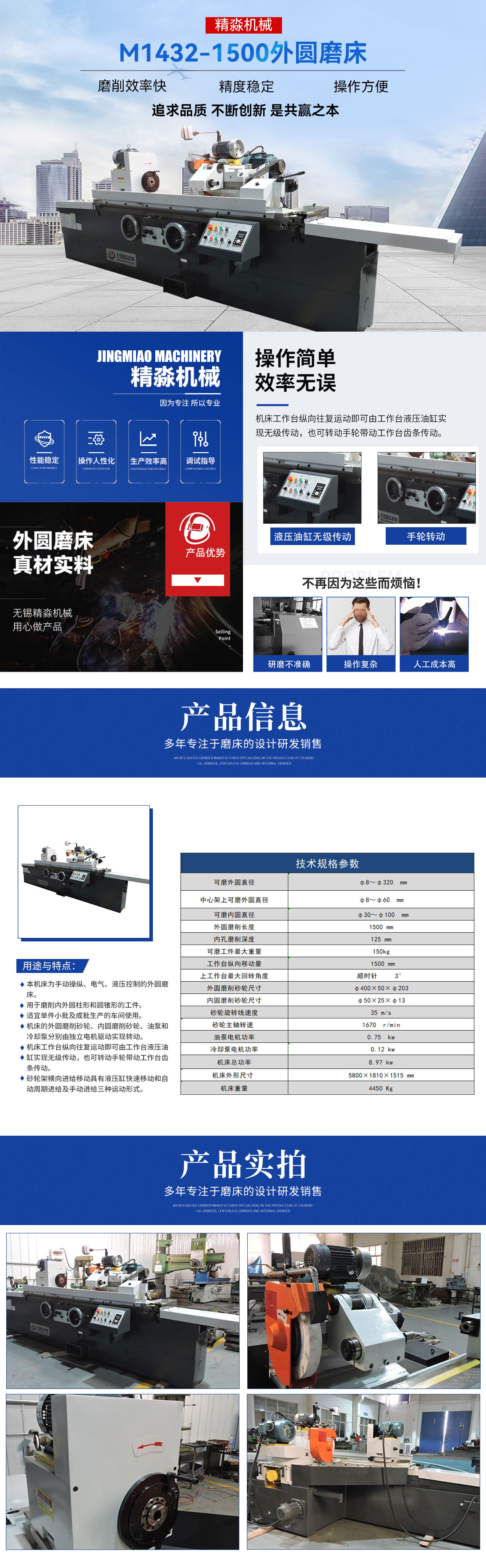 歡迎您訪問無錫市精淼機(jī)械科技有限公司官網(wǎng)!本公司主要產(chǎn)品有:磨床,外圓磨床,萬能外圓磨床,數(shù)控外圓磨床,數(shù)控端面外圓磨床,數(shù)控復(fù)合磨床,專機(jī)定制,高精度外圓磨床 !