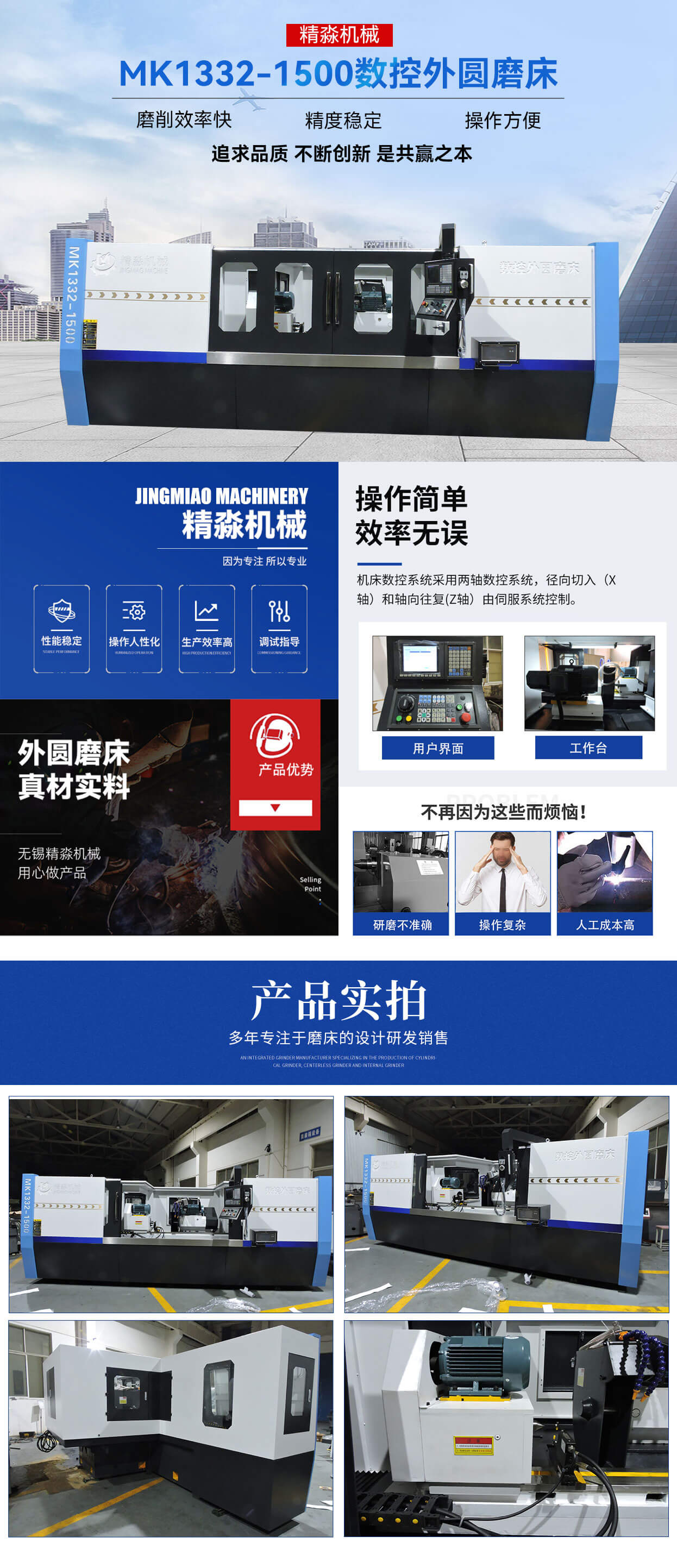 歡迎您訪問無(wú)錫市精淼機(jī)械科技有限公司官網(wǎng)!本公司主要產(chǎn)品有:磨床,外圓磨床,萬(wàn)能外圓磨床,數(shù)控外圓磨床,數(shù)控端面外圓磨床,數(shù)控復(fù)合磨床,專機(jī)定制,高精度外圓磨床 !