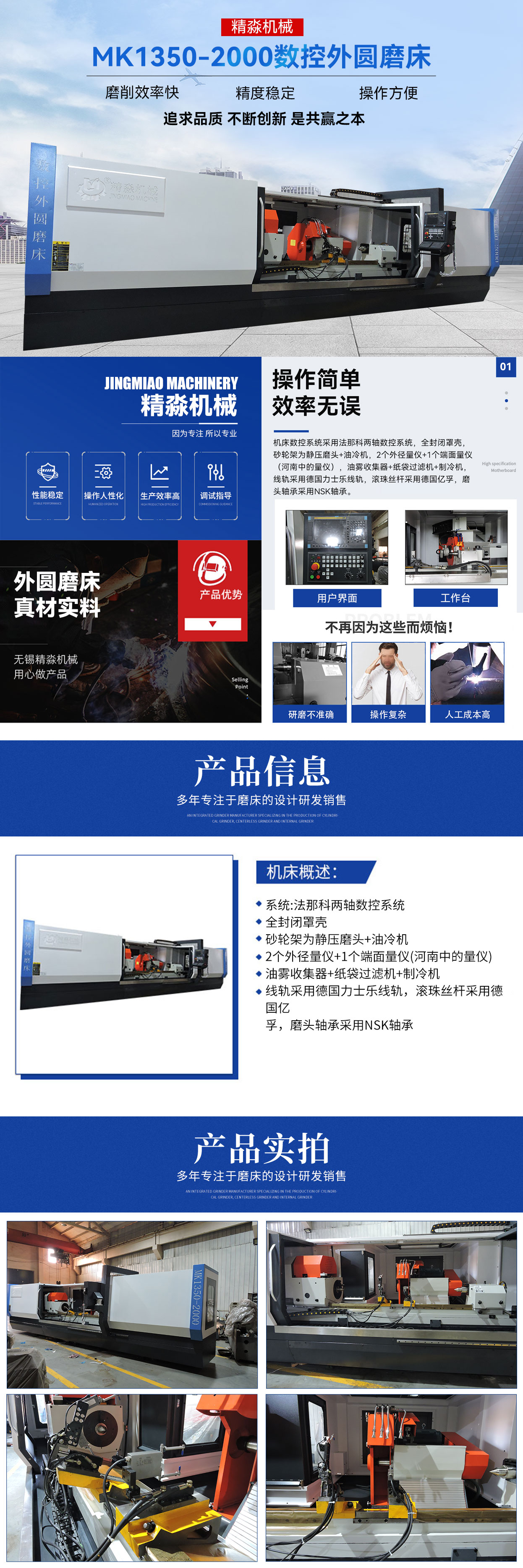 歡迎您訪問無錫市精淼機(jī)械科技有限公司官網(wǎng)!本公司主要產(chǎn)品有:磨床,外圓磨床,萬能外圓磨床,數(shù)控外圓磨床,數(shù)控端面外圓磨床,數(shù)控復(fù)合磨床,專機(jī)定制,高精度外圓磨床 !