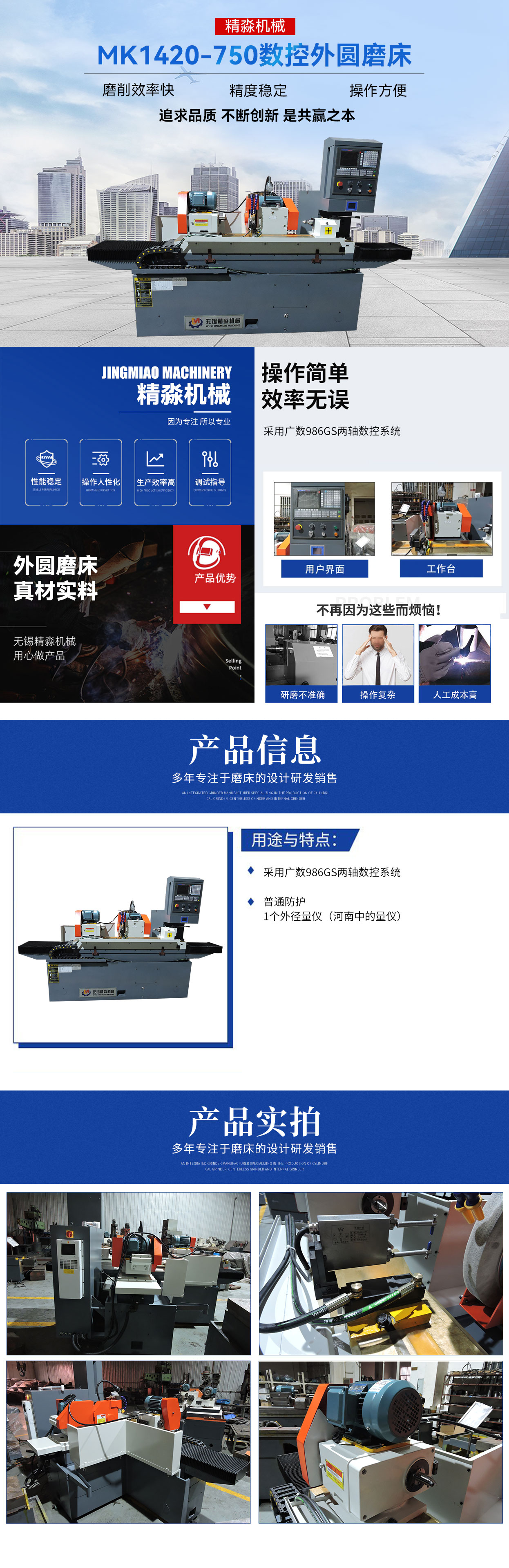 歡迎您訪問無錫市精淼機(jī)械科技有限公司官網(wǎng)!本公司主要產(chǎn)品有:磨床,外圓磨床,萬能外圓磨床,數(shù)控外圓磨床,數(shù)控端面外圓磨床,數(shù)控復(fù)合磨床,專機(jī)定制,高精度外圓磨床 !