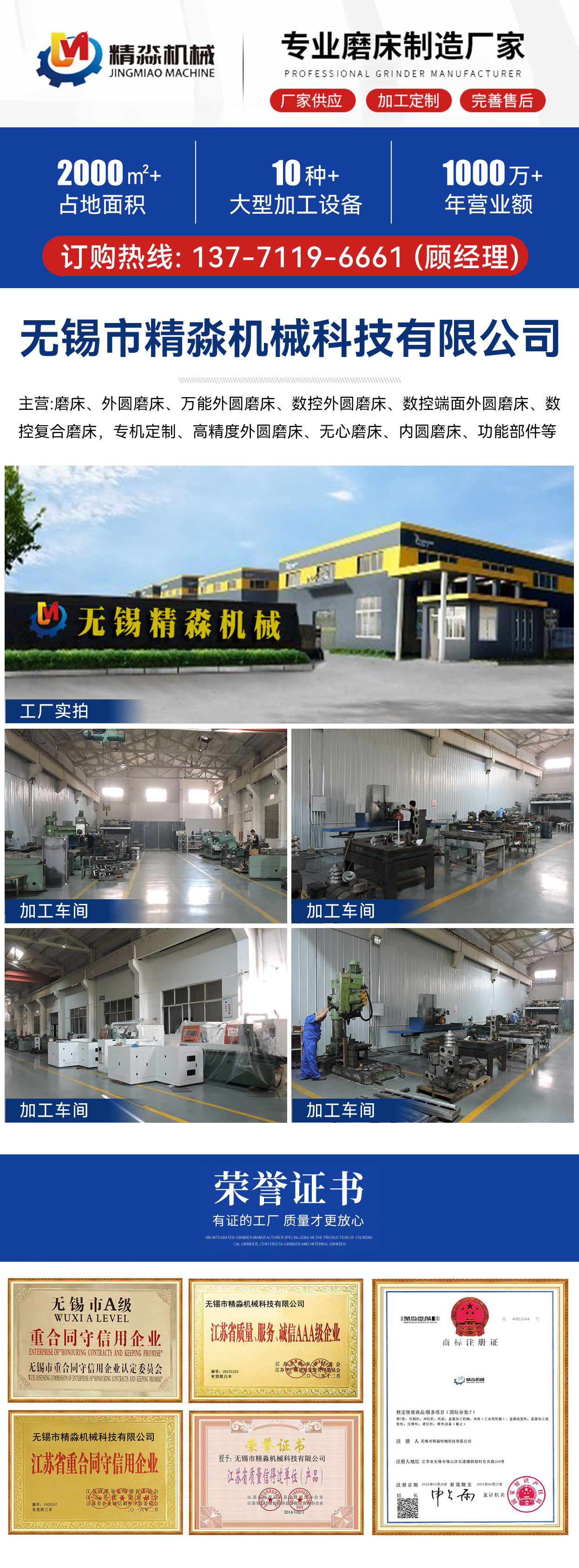 歡迎您訪問無錫市精淼機械科技有限公司官網(wǎng)!本公司主要產品有:磨床,外圓磨床,萬能外圓磨床,數(shù)控外圓磨床,數(shù)控端面外圓磨床,數(shù)控復合磨床,專機定制,高精度外圓磨床 !